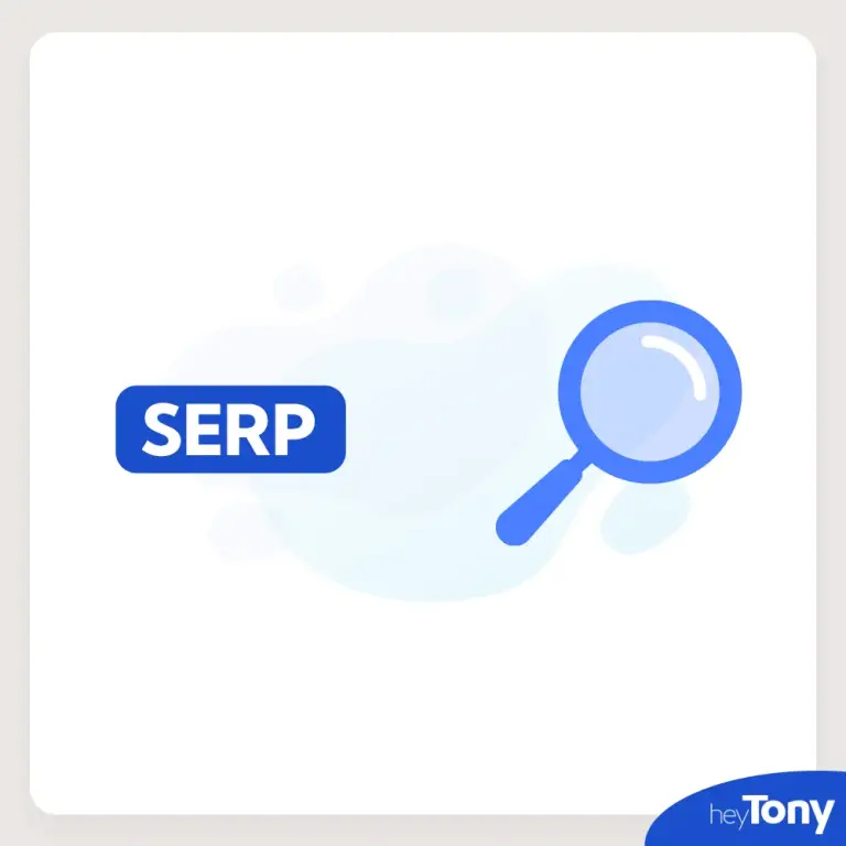 Text that says "Find a Hamilton SEO expert at HeyTony" above an illustration of someone using search and research tools.
